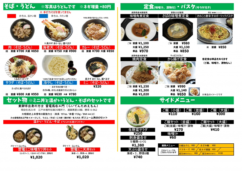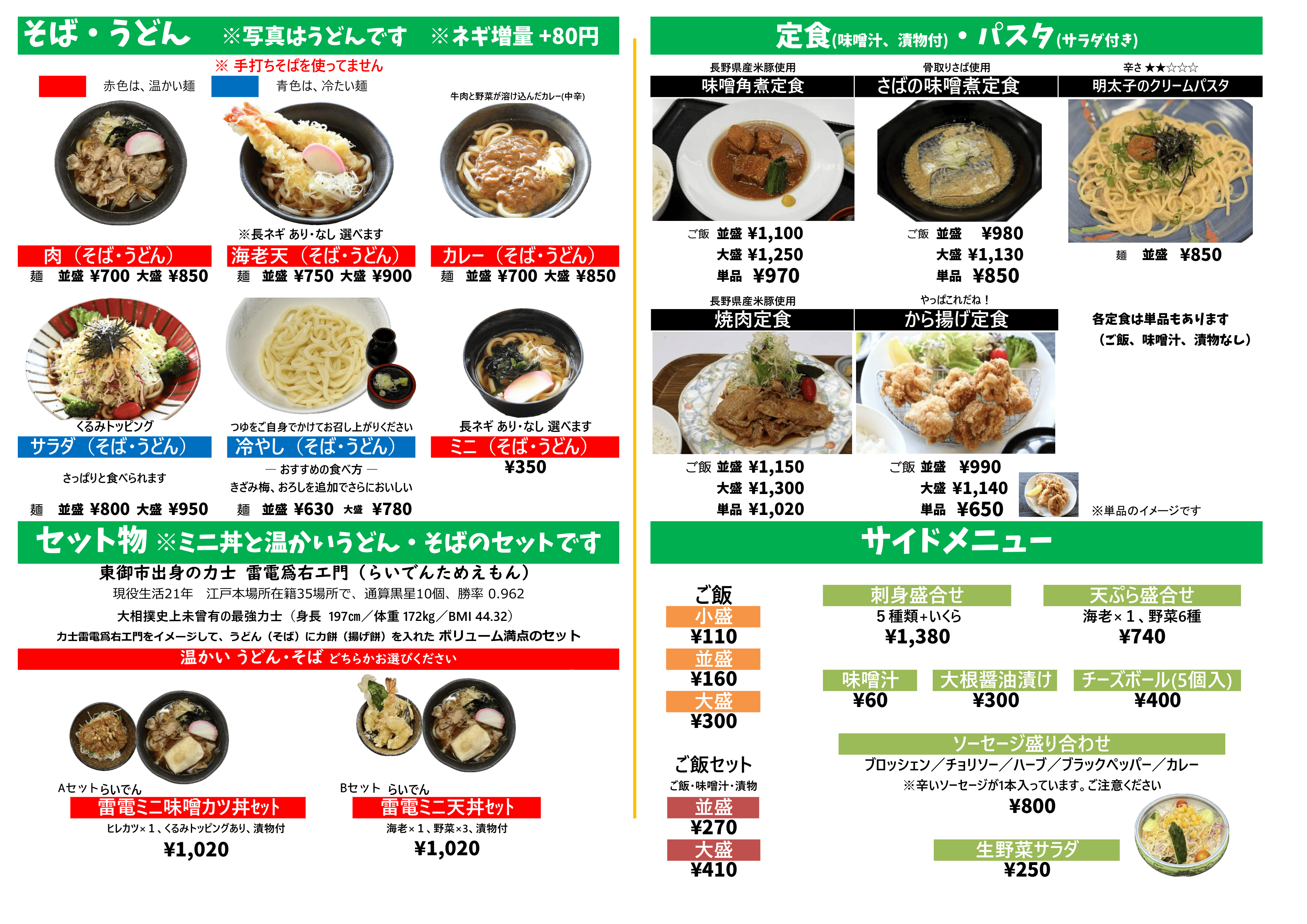 雷電セット(力うどんまたは力蕎麦+ミニ天丼)